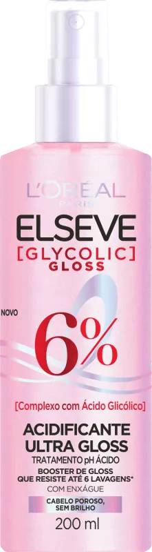 Acidificante capilar Elseve Glycolic Gloss, desenvolvido para equilibrar o pH dos fios, promovendo brilho intenso e selagem das cutículas. Sua fórmula com ácido glicólico auxilia na retenção da hidratação, deixando os cabelos mais macios, alinhados e livres de frizz. Ideal para cabelos opacos e ressecados, garantindo um efeito gloss duradouro e fios visivelmente mais saudáveis.