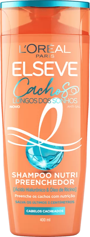 Shampoo Elseve Cachos Longos Dos Sonhos para todos os tipos de cachos, Sua fórmula com ácido hialurônico e óleo de rícino limpa delicadamente, nutre os fios e fortalece o comprimento, ajudando a preservar os cachos do ressecamento e da quebra. Indicado para uso frequente.