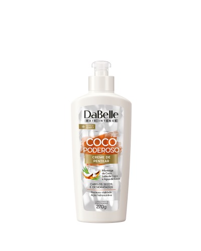 Creme de pentear DaBelle coco poderoso proporciona cabelos super emolientes e hidratados. Sua fórmula rica em óleo de coco, leite de coco e água de coco, agem diretamente no interior da fibra capilar, facilitando o penteado, protegendo e dando aquela carga de hidratação extra que os cabelos precisam.