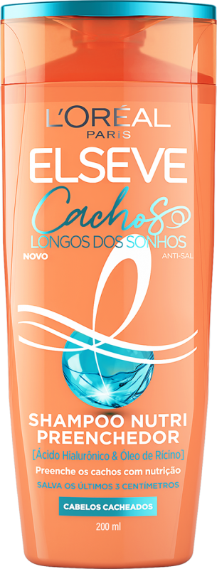 Shampoo Elseve Cachos Longos Dos Sonhos para todos os tipos de cachos, Sua fórmula com ácido hialurônico e óleo de rícino limpa delicadamente, nutre os fios e fortalece o comprimento, ajudando a preservar os cachos do ressecamento e da quebra. Indicado para uso frequente.